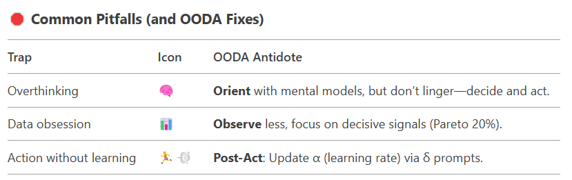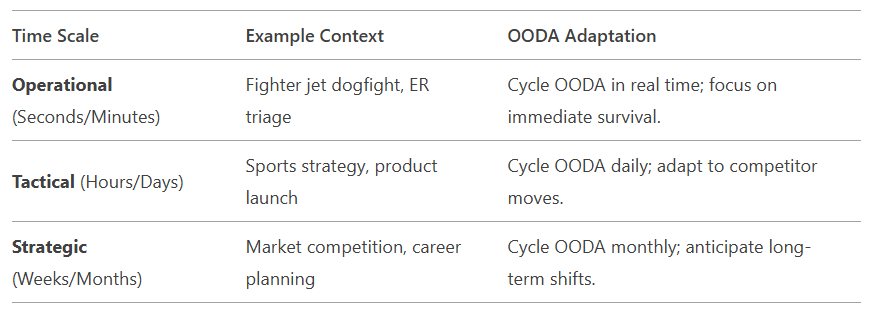 By mastering OODA across time scales, you gain a unified framework for dominating uncertainty, whether in a dogfight, a boardroom, or your personal life.