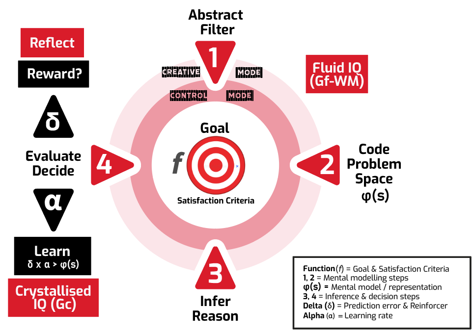 The n-back training paradigm involves constant error detection and adjustment - key elements that mirror the error-monitoring (δ) and learning rate (α) aspects of the OODA loop. (See the G Double Loop above). As you become more adept at recognising when your performance deviates from the task requirements in the n-back exercise, you also hone your ability to detect discrepancies in real-world situations. This means you can more quickly adapt your strategies and refine your mental models, maintaining a competitive edge during critical moments.
