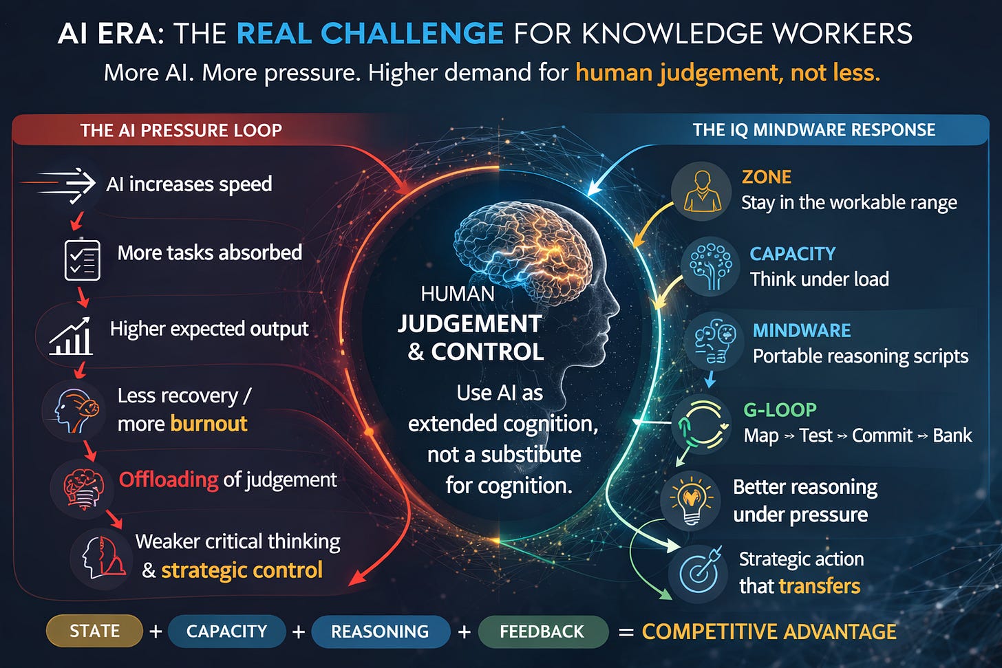 Fourth, the G-Loop: map, test, commit, and bank what survives real checks, so that good thinking becomes more reusable and more transferable.